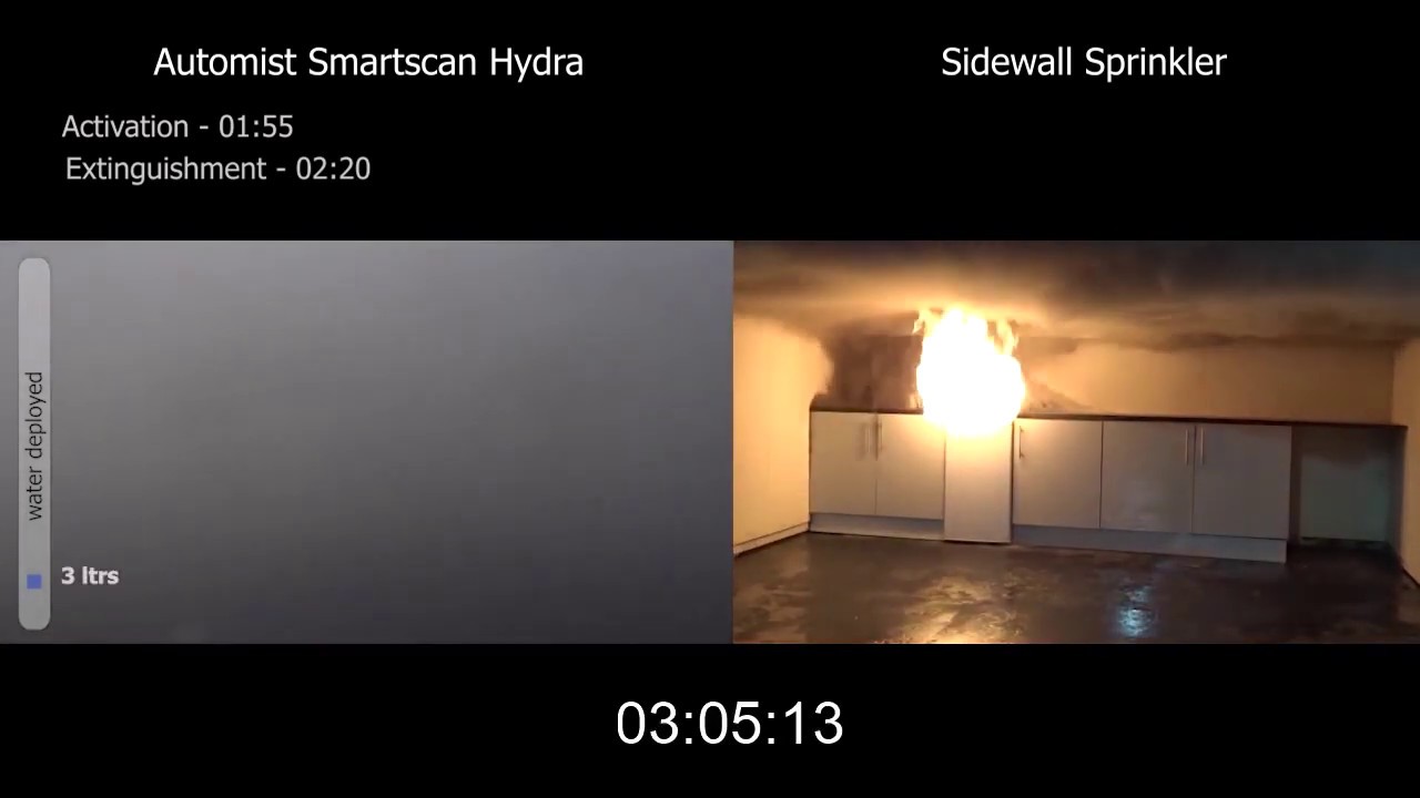 Automist connects to the normal water supply, suppressing fires with 90% less water.